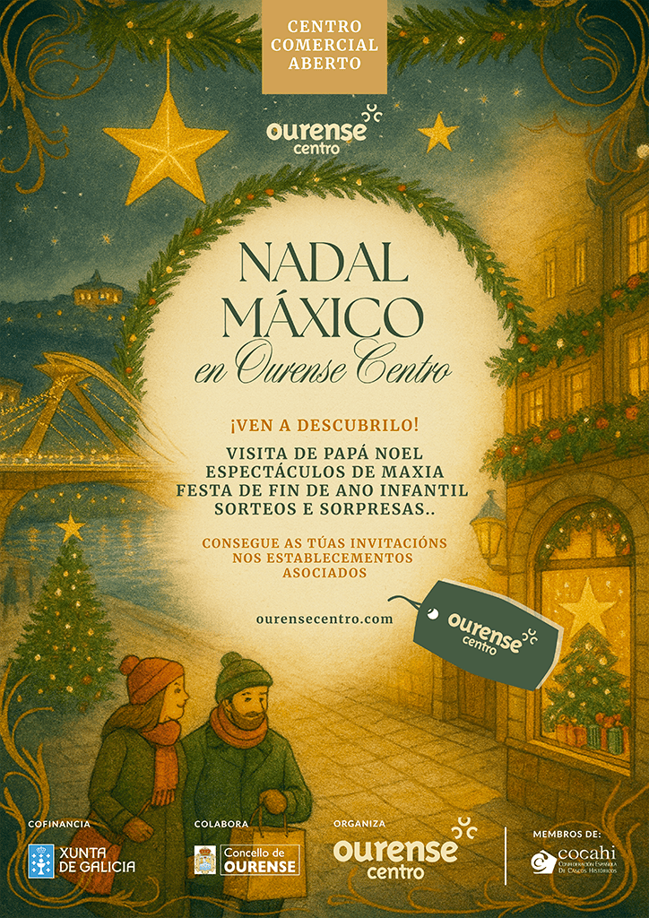 Un año más, el Centro Comercial Aberto Ourense Centro pone en marcha su campaña de Navidad con una programación llena de ilusión, actividades familiares y propuestas diseñadas para que ourensanos y visitantes disfruten al máximo del ambiente